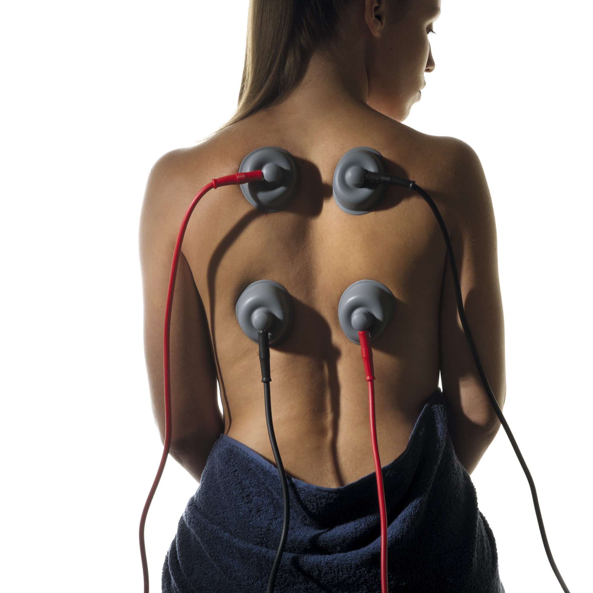 In vacuum therapy combined with electrotherapy, the patient's sensitivity to electric current decreases thanks to the operation of the suction cups, therefore this technique is particularly recommended in cases where electrostimulation procedures must be performed on patients with particular sensitivity to electric current.